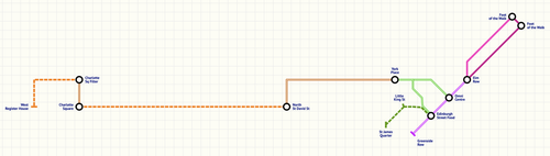 I never go past either end of nor along the Vennel (line 5) without fondly remembering the imaginary network. Similarly I can't go anywhere near Dovecot Road or the Pinkhill path (lines 7R, 22G and 22Y) without wondering where the shops are, or if I'm still allowed to go to the zoo.
