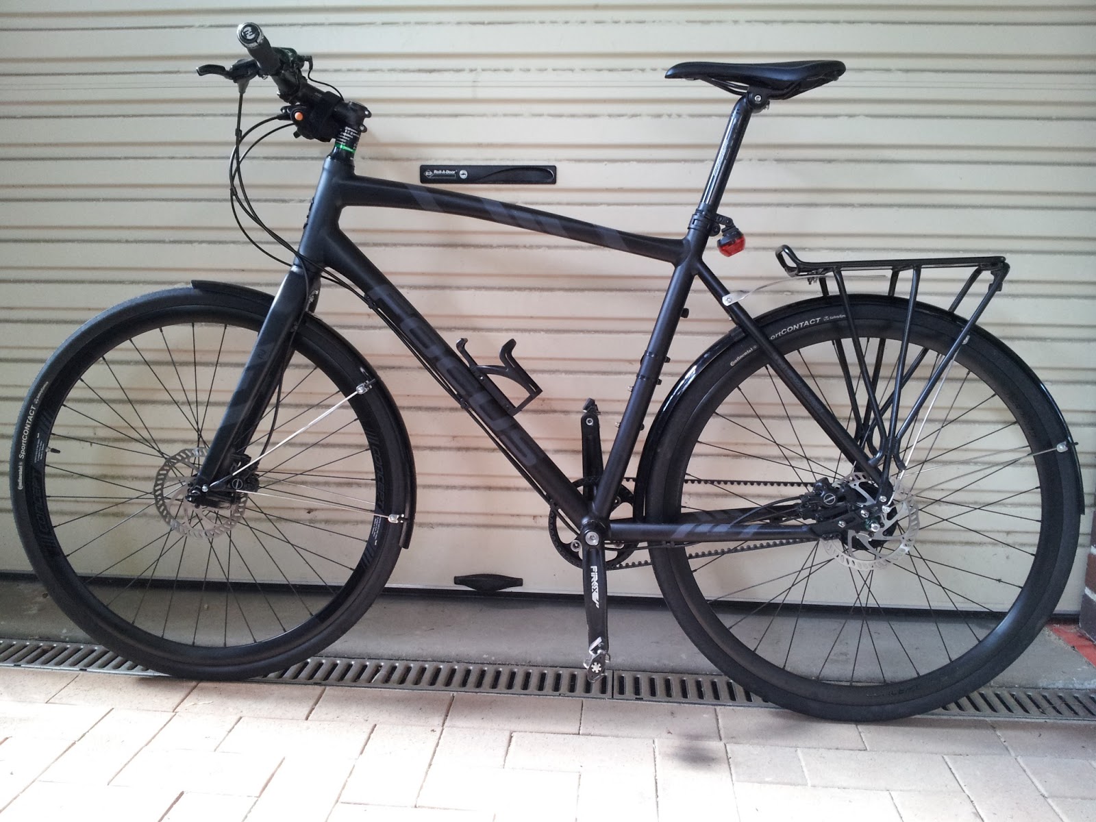 My trusty commute bike was stolen from our hallway last week. It's a black Focus Planet TR 1.0 (2013). It's a belt drive model, which makes it a bit more distinctive. I added 'ergonomic' grips and bar ends, black rear pannier rack and black mudguards, but I suppose the thieving b******* could have removed these by now.